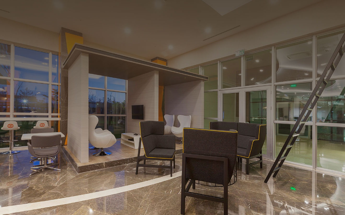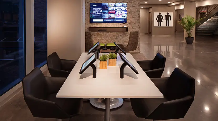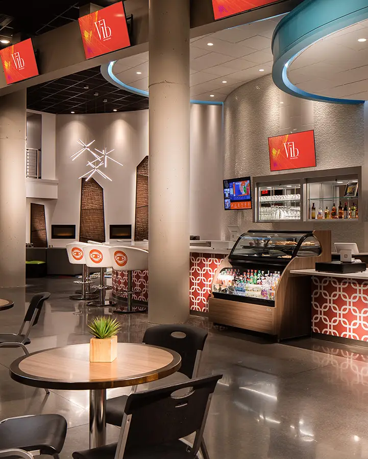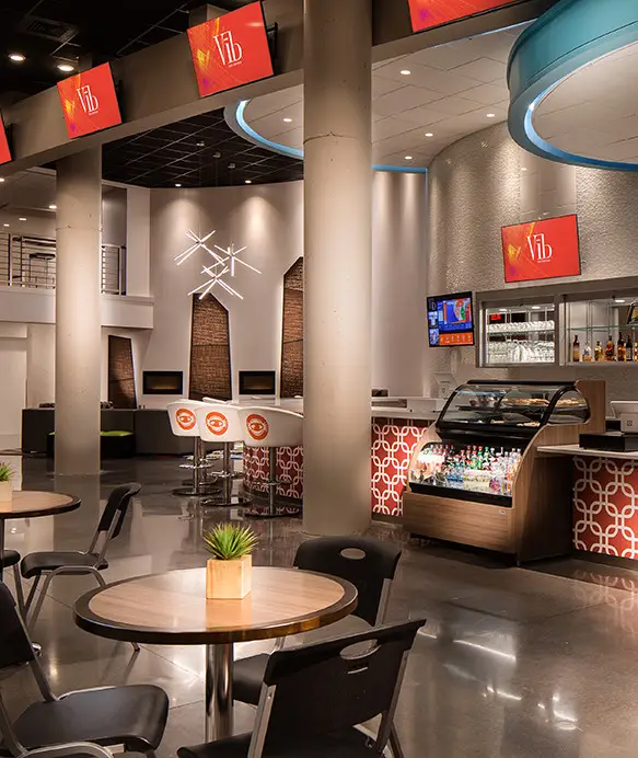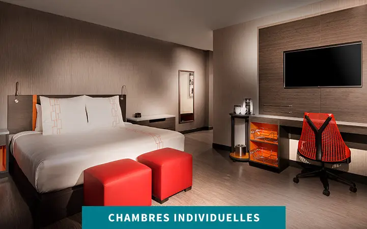 Soufflez un peu et détendez-vous dans l’un de nos espaces communs polyvalents. Après une journée chargée, venez respirer profondément dans notre Zone Zen. Rechargez vos batteries au café, où des gourmandises et du bon café vous attendent toute la journée, ou venez siroter un cocktail préparé sur place entre amis ou collègues dans notre bar animé. Si vous n’avez qu’une envie, c’est de vous vider la tête après une longue journée, nos stations de jeux vidéo individuelles vous offriront un niveau élevé de divertissement.